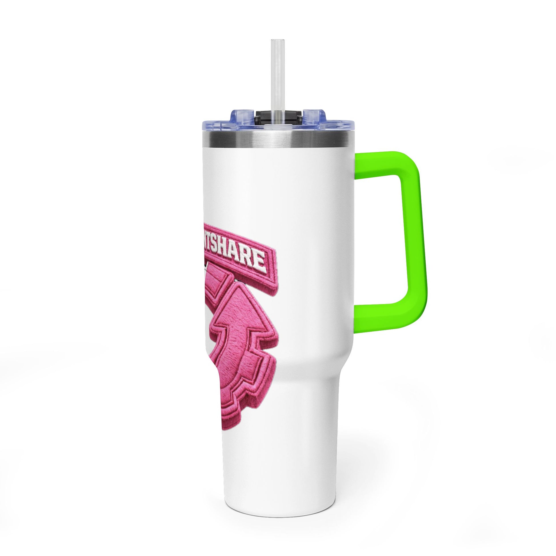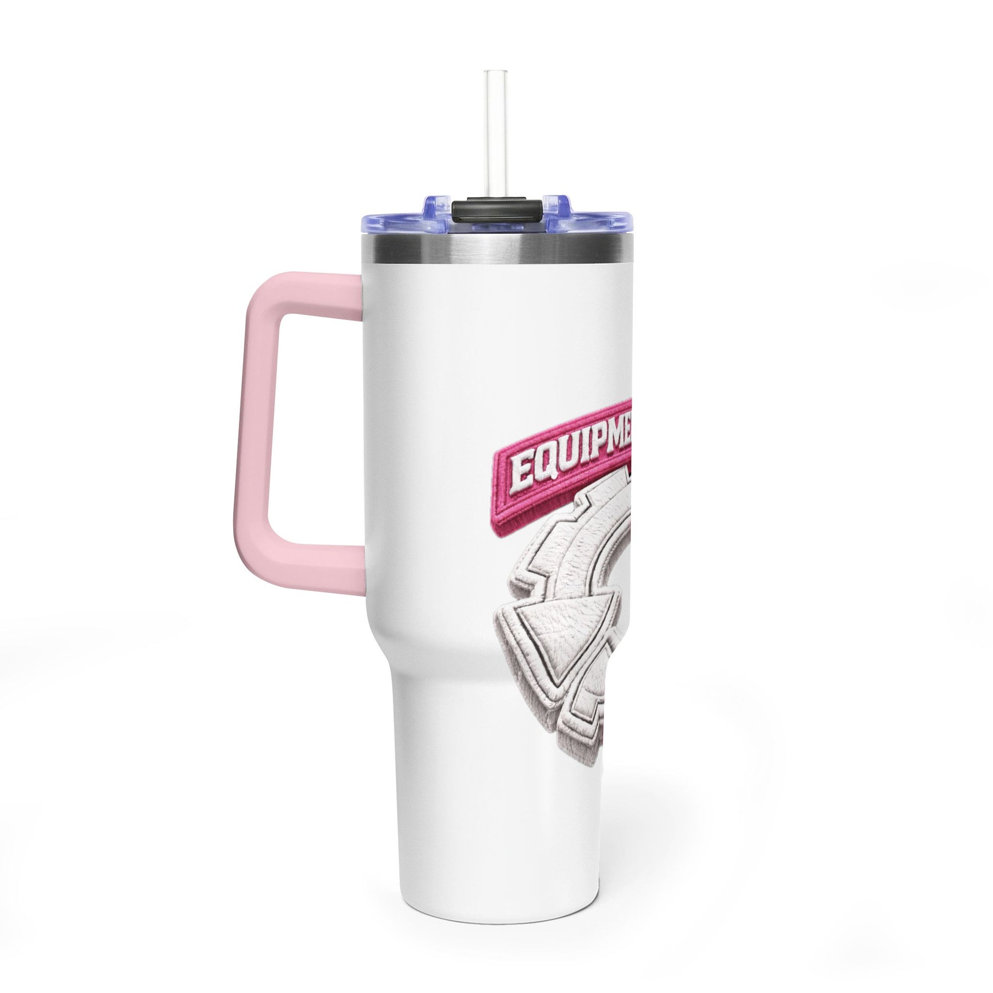 This 40oz vacuum thermal tumbler keeps your day moving — whether it’s a long shift, a roadside pit stop, or a weekend project. The double-wall stainless steel construction locks in temperature for hours, so coffee stays hot on early mornings and iced drinks stay crisp through afternoon breaks. The tall, slim silhouette with a comfortable handle fits most cup holders and feels secure in your hand. A removable, re-sealable lid with clear straw gives you quick access while minimizing spills. The design wraps around the tumbler with a slightly exposed stainless rim for an industrial, lived-in look that wears well.
