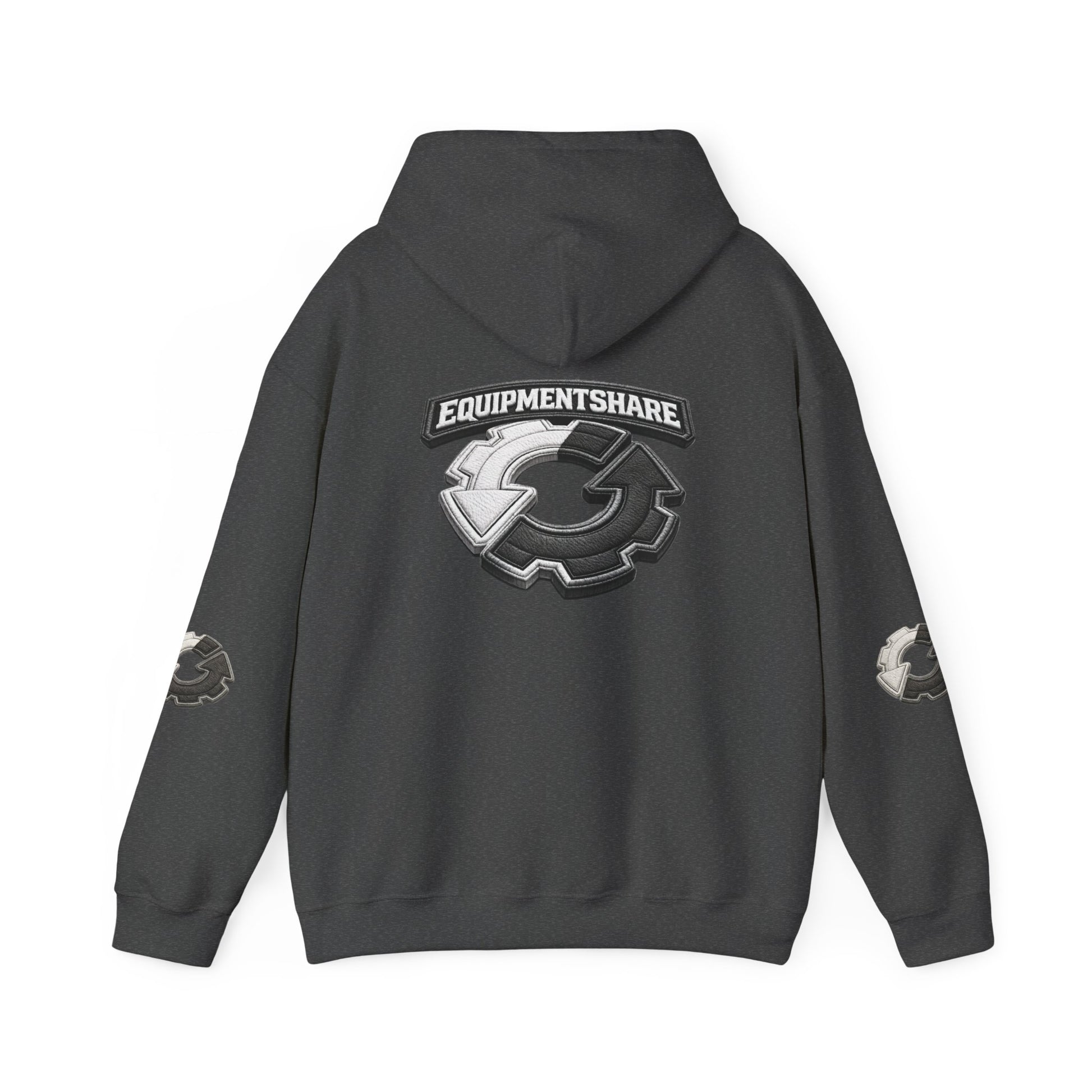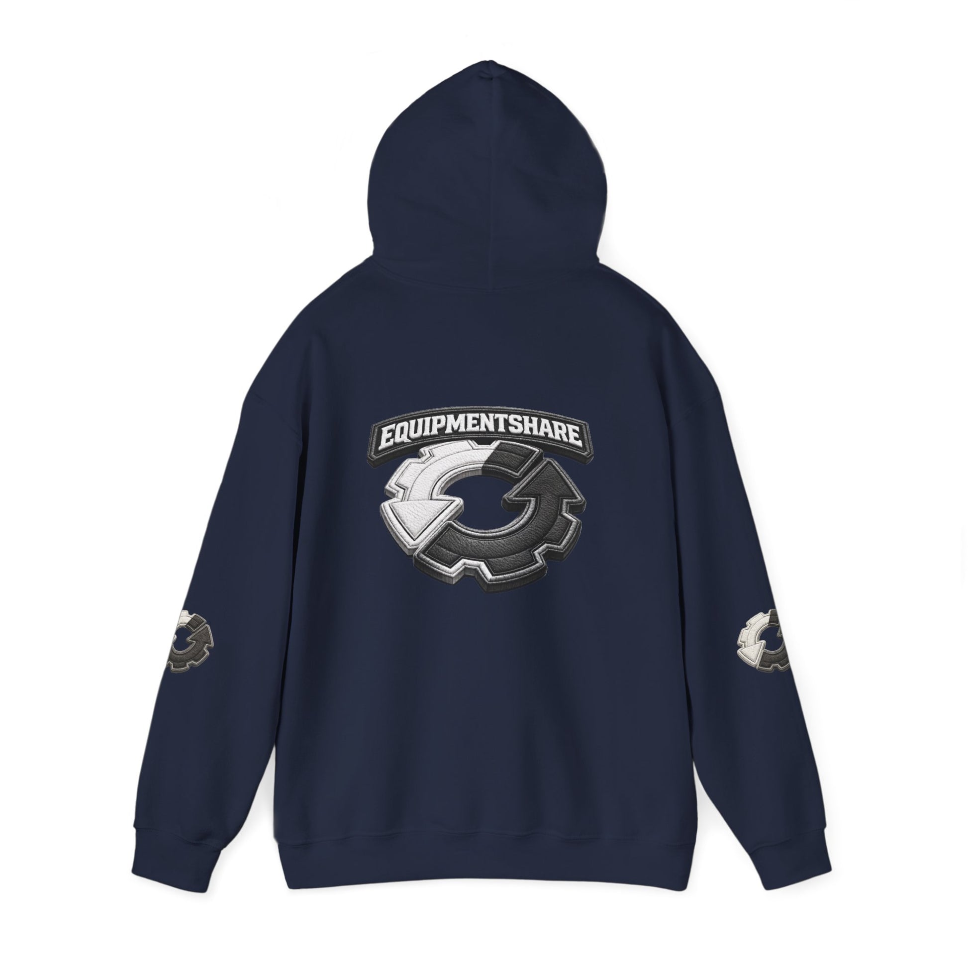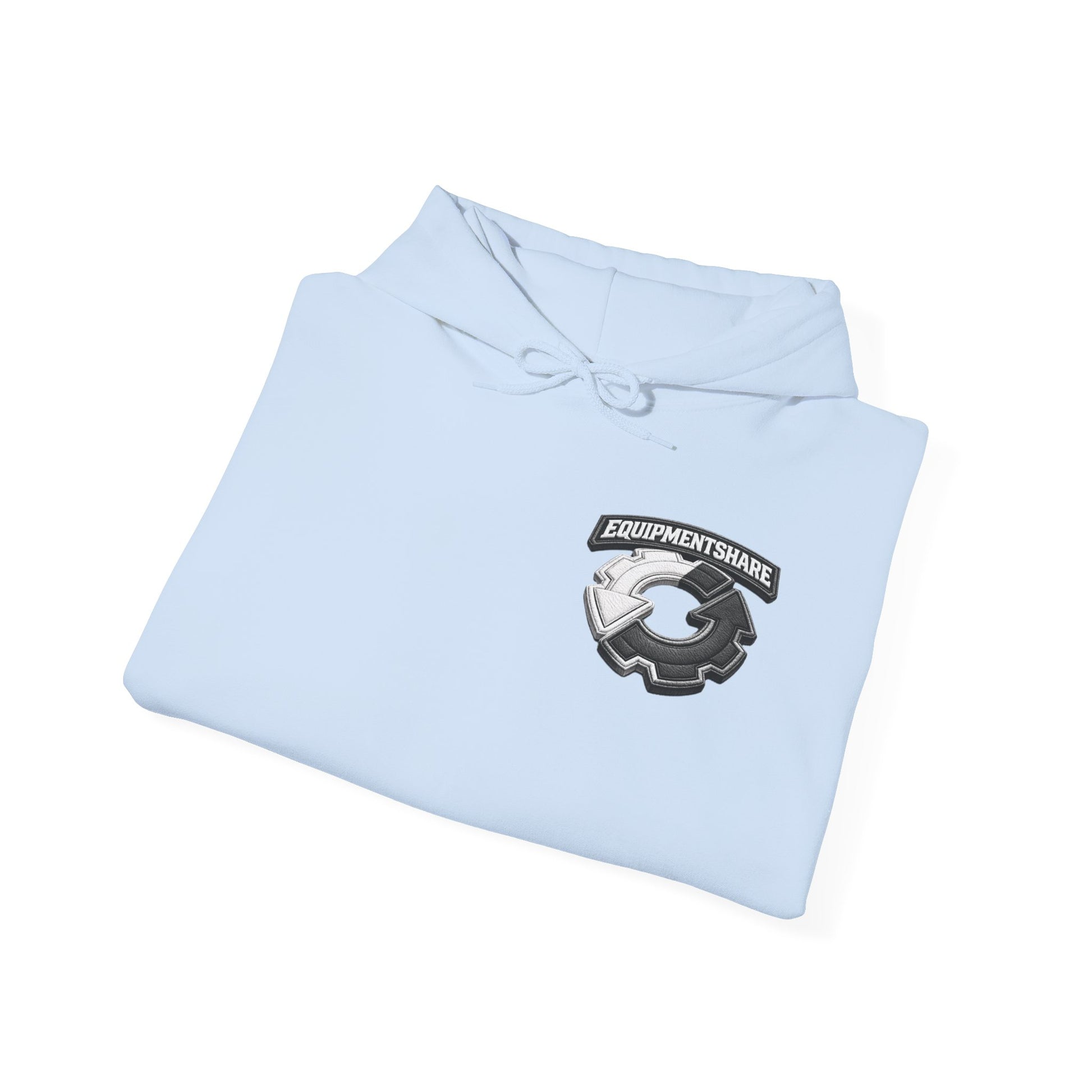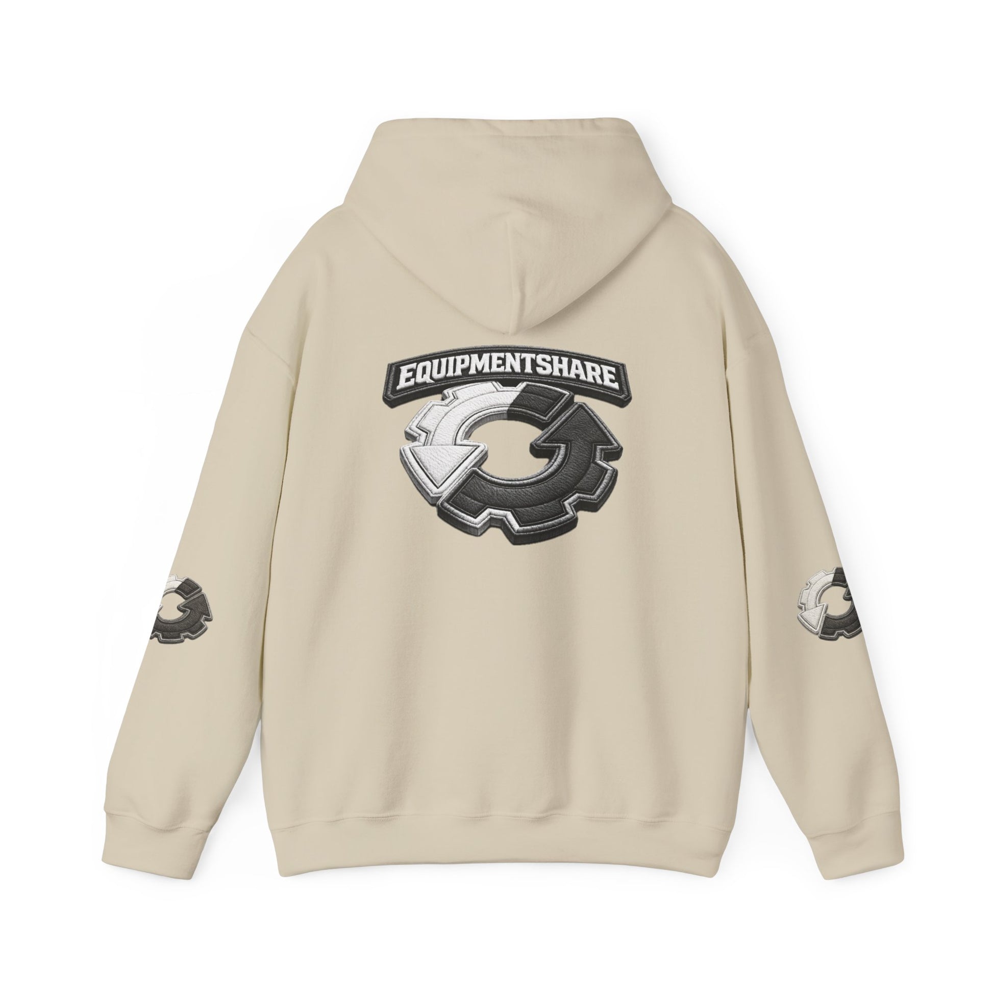 A soft, midweight hoodie made to be worn during long workdays, weekend projects, and early-morning meetups. Clean white fabric carries a bold monochrome gear-and-arrow badge on the chest and a larger emblem across the back — subtle branding that reads as utility and crew identity rather than loud fashion. Matching sleeve emblems add balance and a workshop-ready feel. The roomy kangaroo pocket and double-layer hood with color-matched drawcord make this piece practical and comfortable. Durable 50/50 cotton-poly construction holds prints and embroidery well, so the graphics keep their crisp edges through wear and washes. Wear it to the job site, the maker space, or while hauling gear — it settles into a hardworking routine and feels like part of the team.