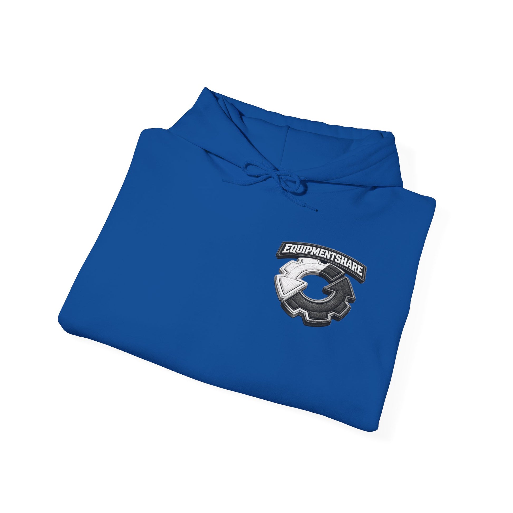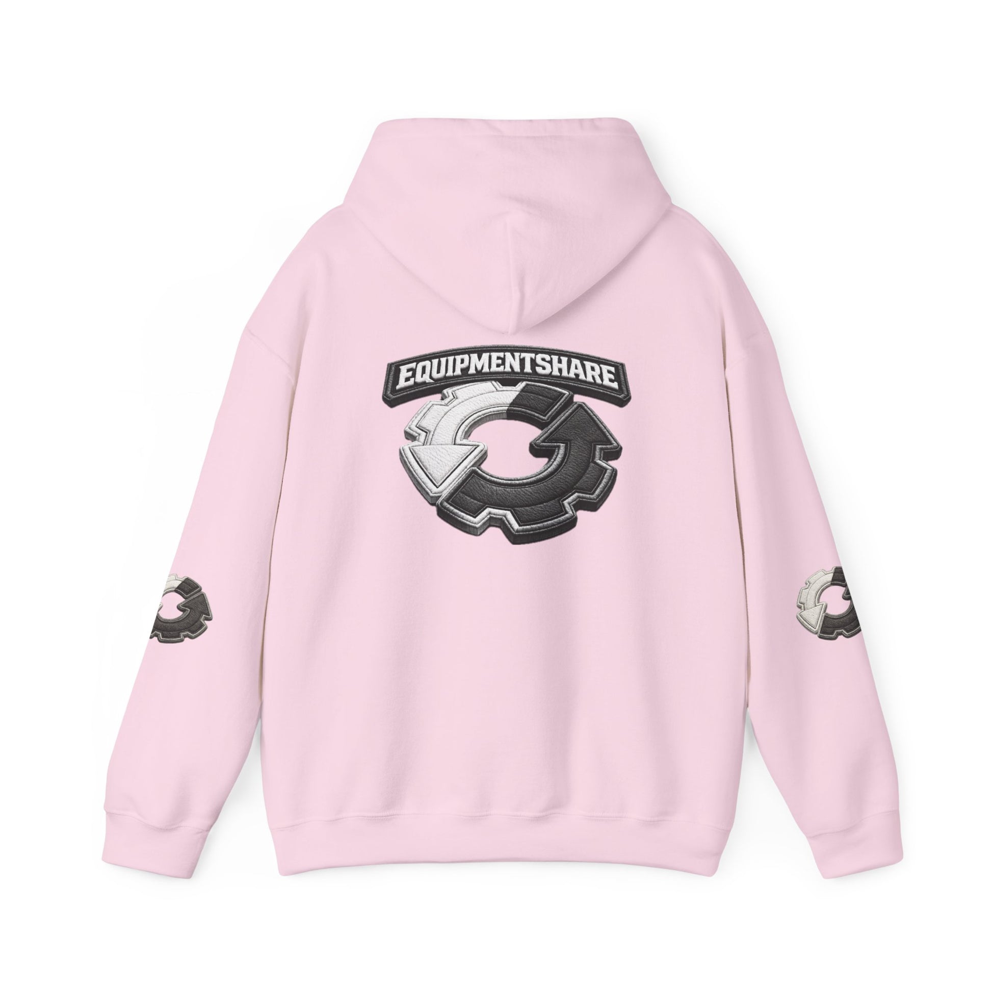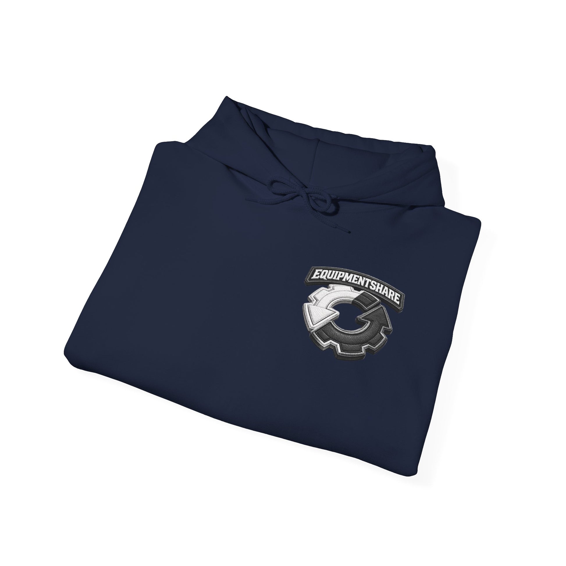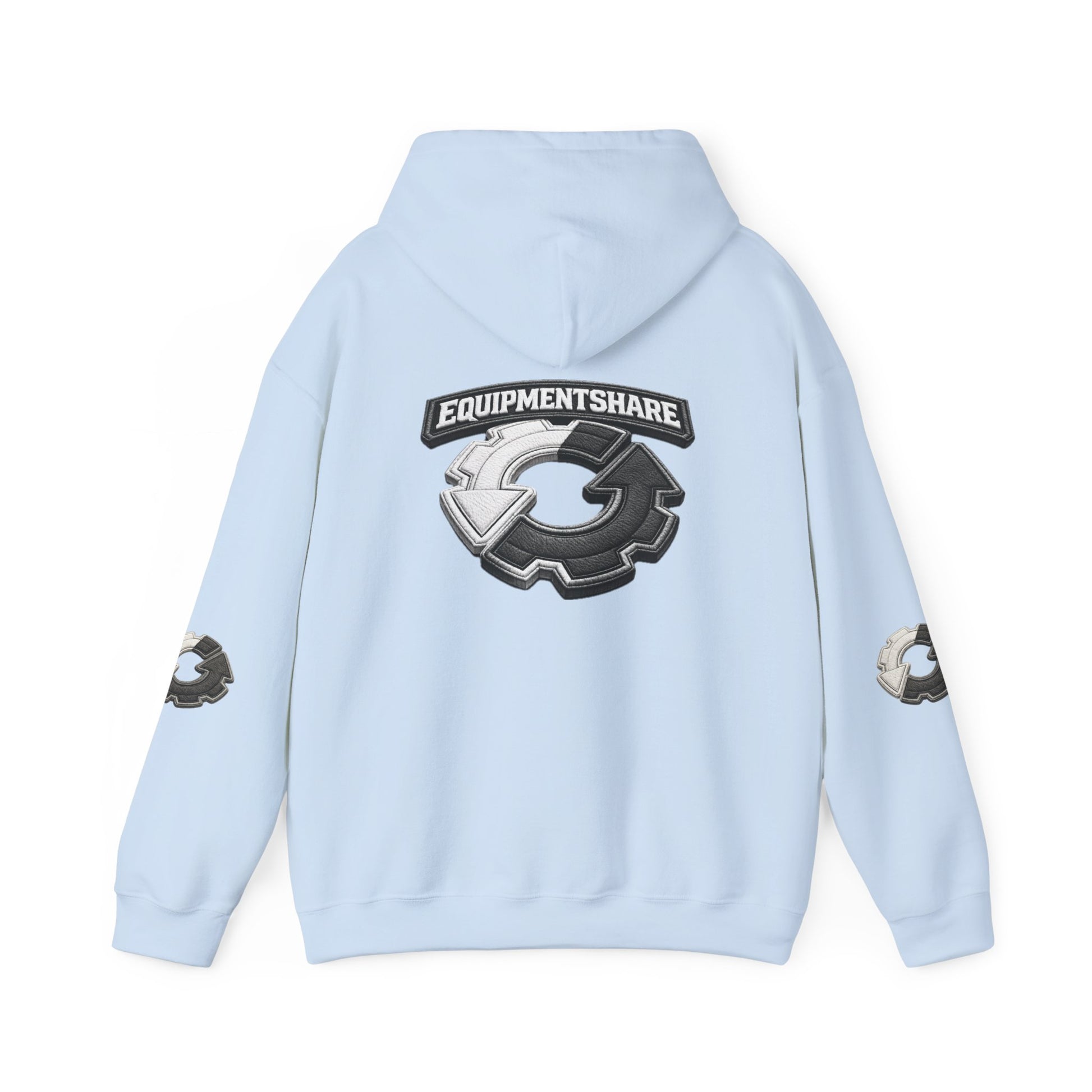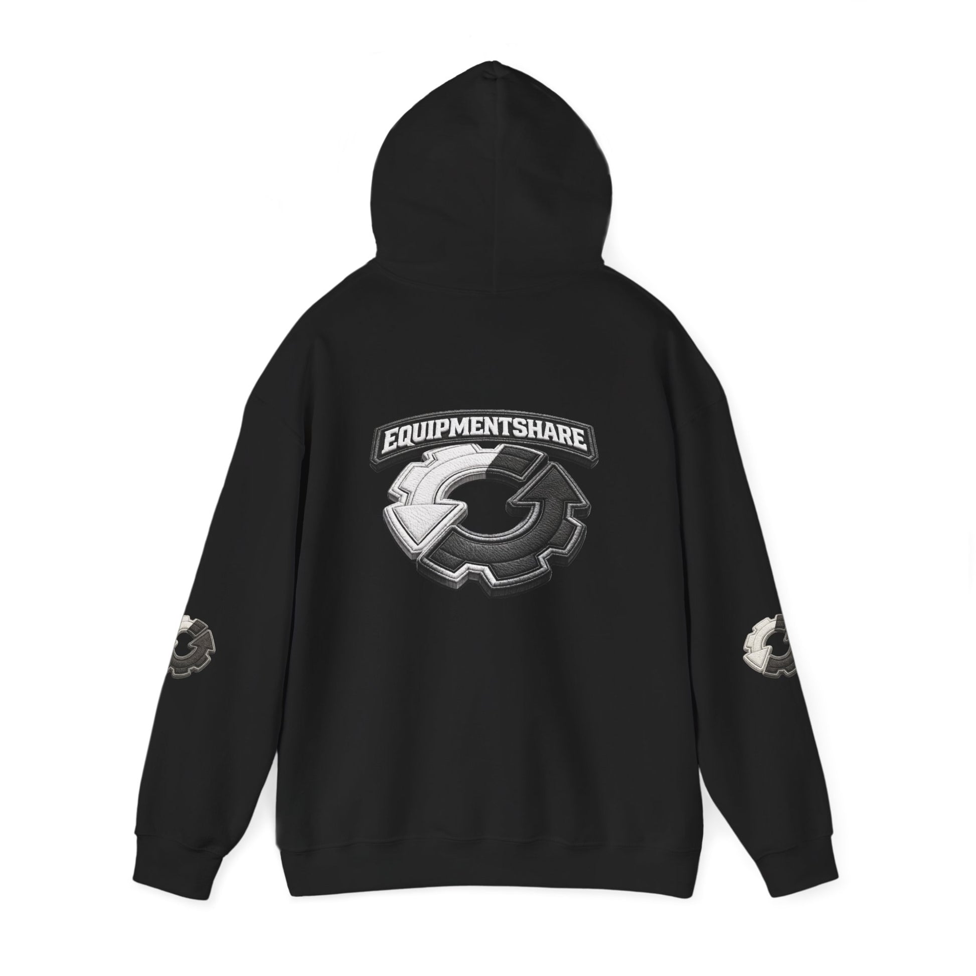A soft, midweight hoodie made to be worn during long workdays, weekend projects, and early-morning meetups. Clean white fabric carries a bold monochrome gear-and-arrow badge on the chest and a larger emblem across the back — subtle branding that reads as utility and crew identity rather than loud fashion. Matching sleeve emblems add balance and a workshop-ready feel. The roomy kangaroo pocket and double-layer hood with color-matched drawcord make this piece practical and comfortable. Durable 50/50 cotton-poly construction holds prints and embroidery well, so the graphics keep their crisp edges through wear and washes. Wear it to the job site, the maker space, or while hauling gear — it settles into a hardworking routine and feels like part of the team.