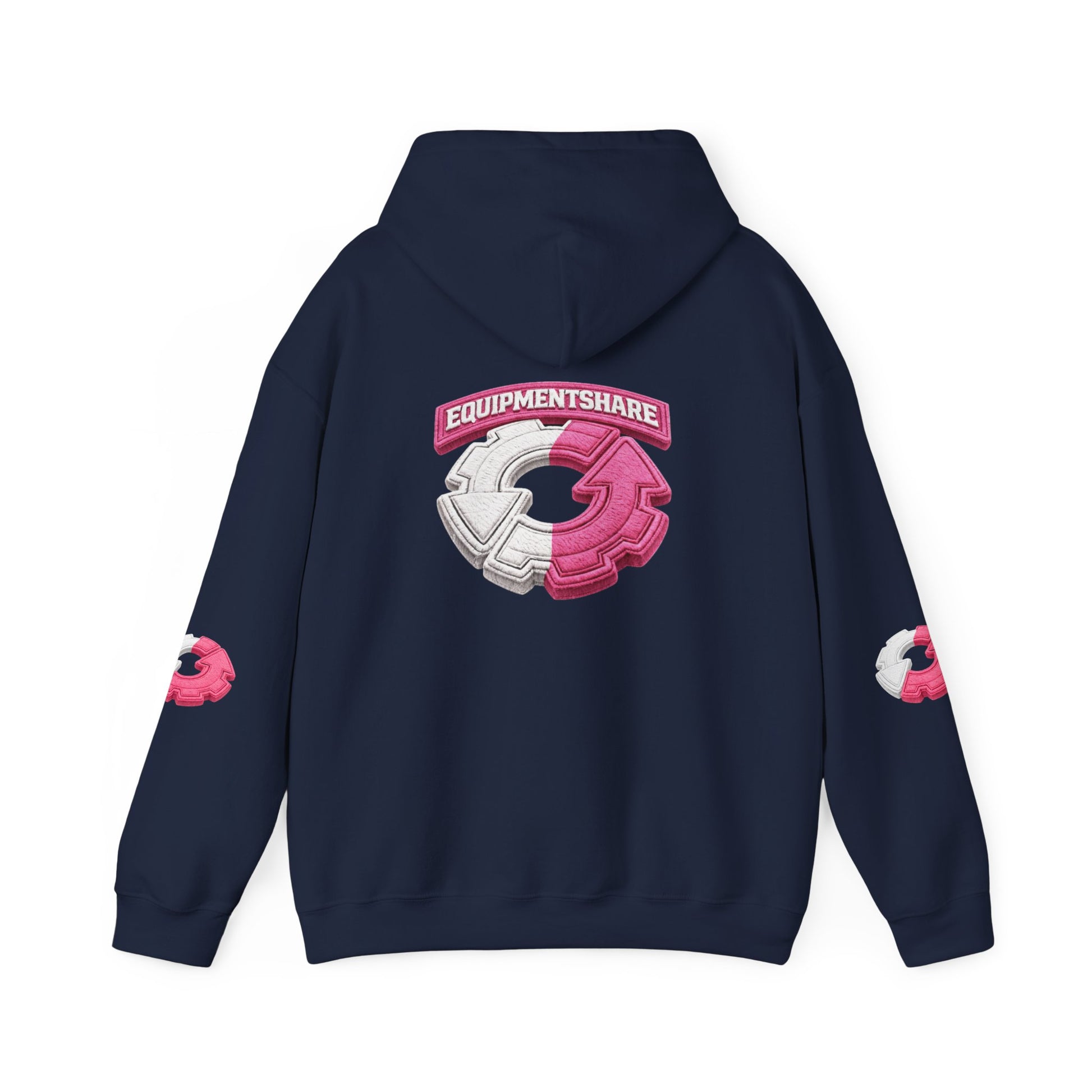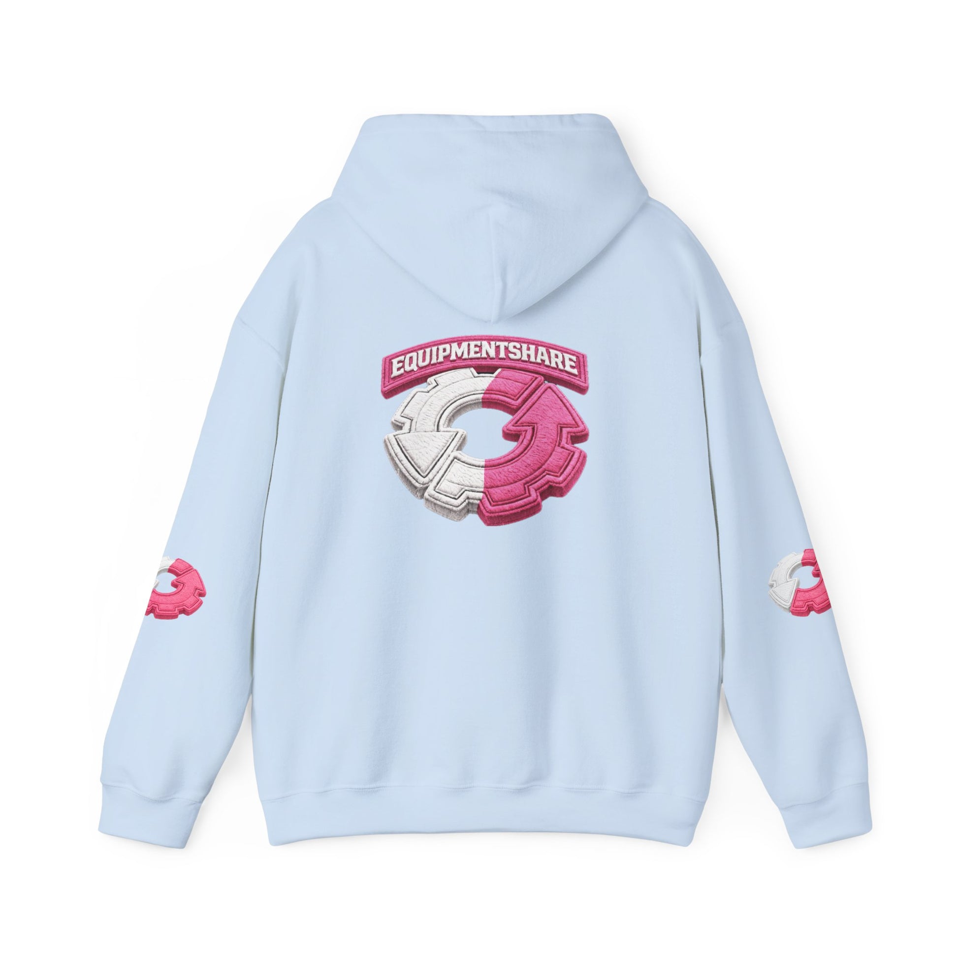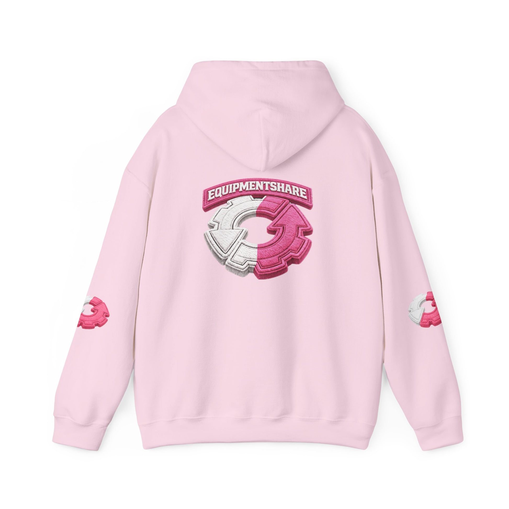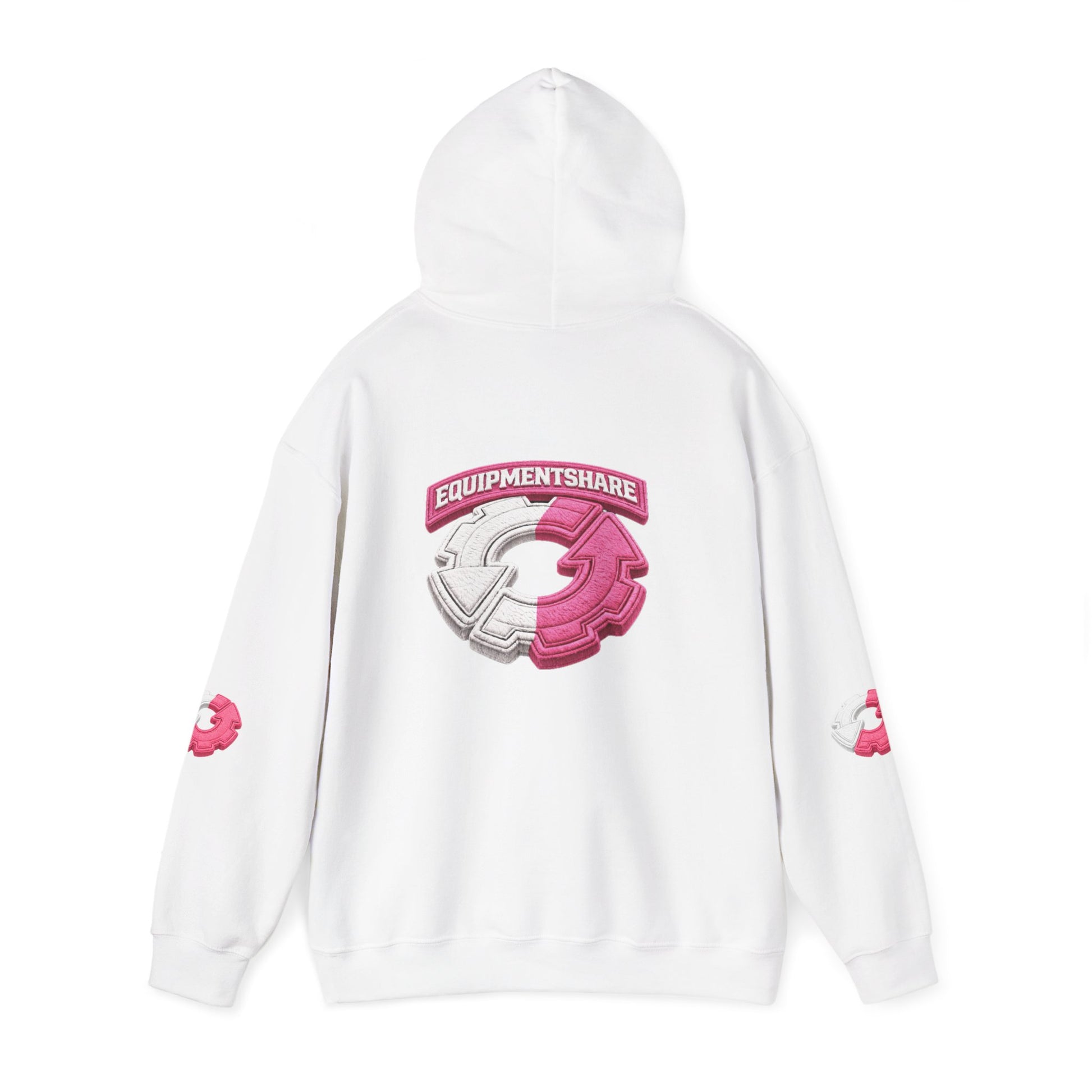 This cozy hooded sweatshirt combines soft warmth with bold, playful graphics — a wearable nod to community and shared gear. The clean white canvas makes the pink-and-gray emblem pop on the chest and larger on the back, while matching small crest prints on both sleeves add a sporty, street-ready touch. The roomy kangaroo pocket and adjustable double-lined hood invite chilly-day comfort. Built to last with a midweight cotton/poly blend and flat seams, it feels lived-in from the first wear and holds up to repeated washing without losing shape. Wear it to morning meetups, gear swaps, or late-night creative sessions — it’s the kind of hoodie that quietly announces you’re part of a collaborative crew.