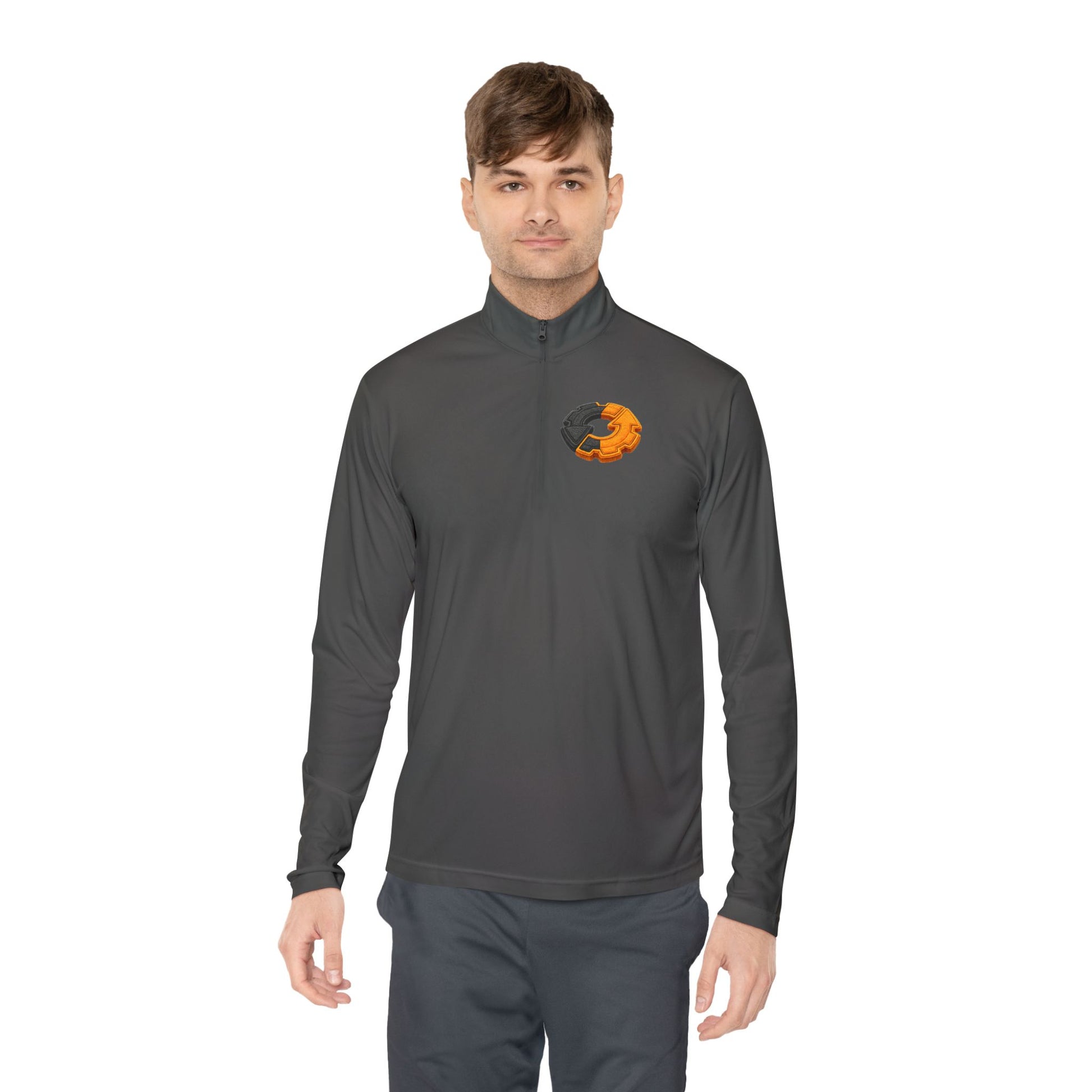 This quarter-zip pullover feels like a crisp morning on a trail — light, breathable, and ready for movement. The slim cadet collar and short zipper give it a sporty silhouette that layers easily under jackets or over a tee. The fabric is whisper-light and sheds moisture fast, so you stay dry when the pace picks up. Subtle, high-contrast artwork at the chest and upper back adds an urban-adventure vibe without shouting for attention. Wear it for early runs, workshop days, or slow weekend drives when you want comfort that moves with you.