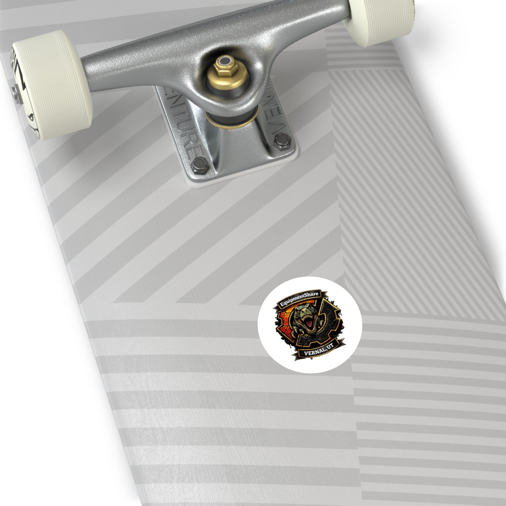 A bold, weather-ready round vinyl sticker that brings a gritty, adventurous energy to gear and surfaces. The design centers on a roaring T-Rex set against industrial gears and a rugged badge reading "EquipmentShare, Vernal, UT," giving the sticker a vintage-meets-tactical look. Bright, high-contrast printing preserves every cracked texture and rusty tone so the emblem stands out on laptops, toolboxes, water bottles, hard hats, and more. The protective laminate and eco-solvent inks hold up to scratches, sun, and rain, so the sticker keeps its fierce personality through the kind of rough use this design evokes. Stick it where you want an instant touch of grit and local pride.