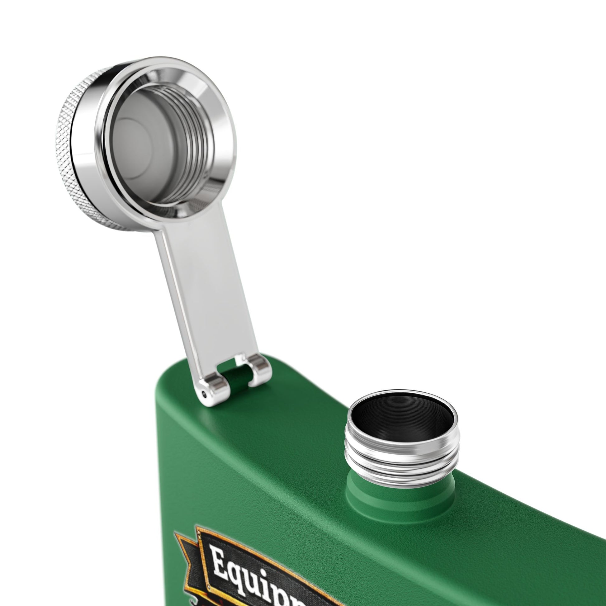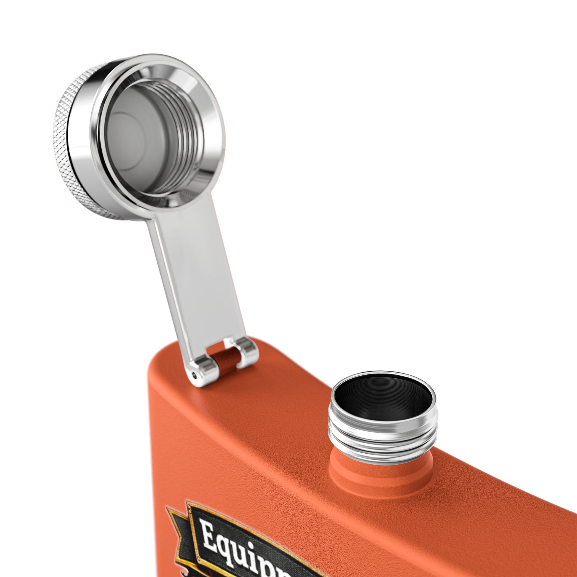 A rugged 6oz stainless steel flask finished in a warm orange powder coat and printed with a bold, vintage-style emblem. It sits low in your pocket but carries enough for a warming sip on trailheads, at job sites, or around a campfire. The secure, leak-resistant lid with latch keeps contents safe, while double-wall construction helps maintain temperature for hours. The UV DTF print gives a crisp, detailed logo look that wears in with character over time. Hand wash only to preserve the finish and print.